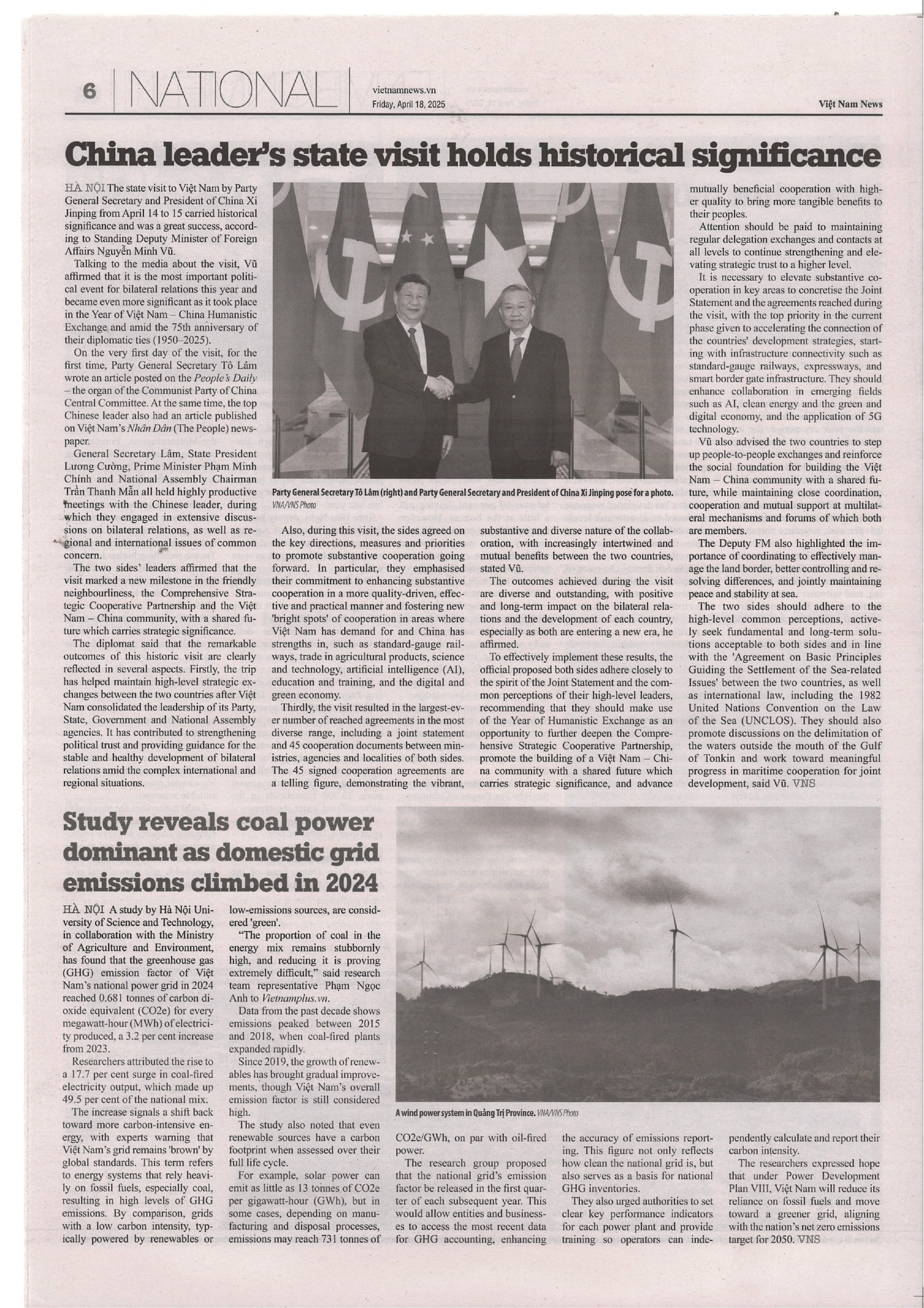 “The state visit to Việt Nam by Party General Secretary and President of China Xi Jinping from April 14 to 15 carried historical significance and was a great success, according to Standing Deputy Minister of Foreign Affairs Nguyễn Minh Vũ.”-Việt Nam News