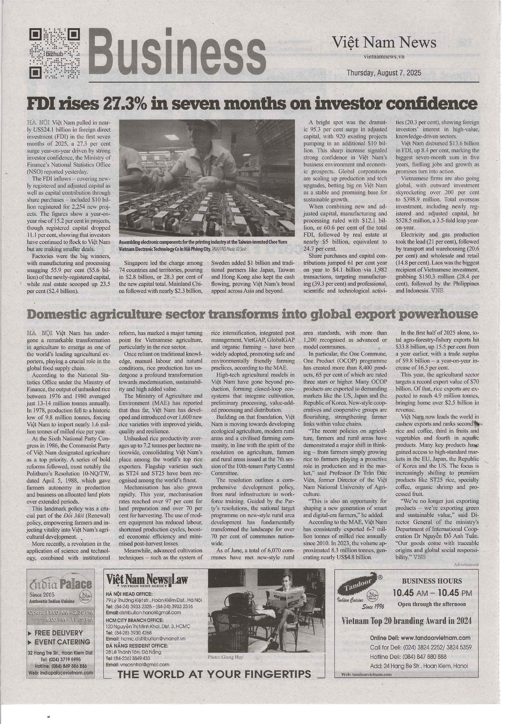 “Việt Nam has undergone a remarkable transformation in agriculture to emerge as one of the world’s leading agricultural exporters, playing a crucial role in the global food supply chain.