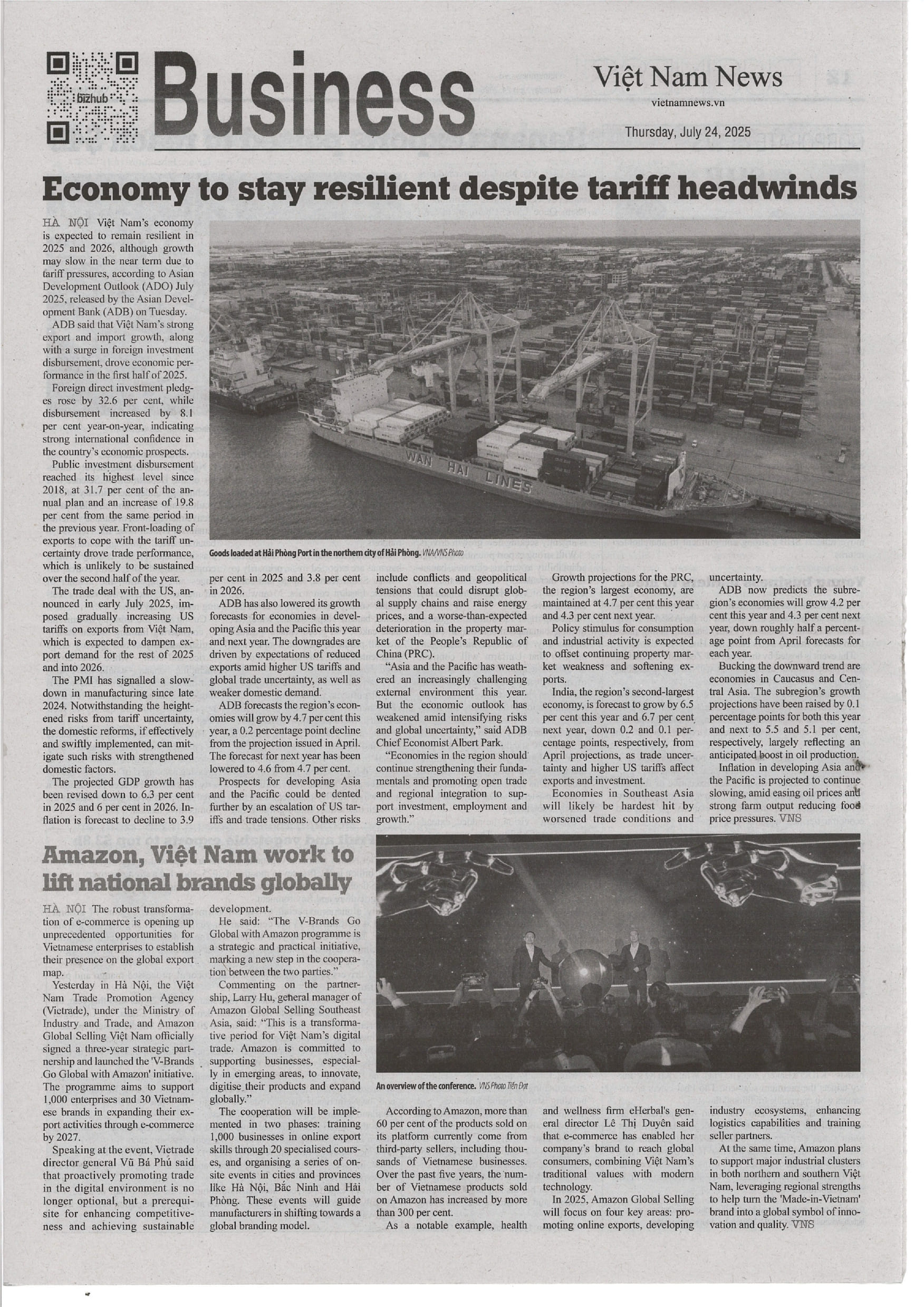 Public investment disbursement reached its highest level since 2018, at 31.7 per cent of the annual plan and an increase of 19.8 per cent from the same period in the previous year. Front-loading of exports to cope with the tariff uncertainty drove trade performance, which is unlikely to be sustained over the second half of the year.”- Việt Nam news