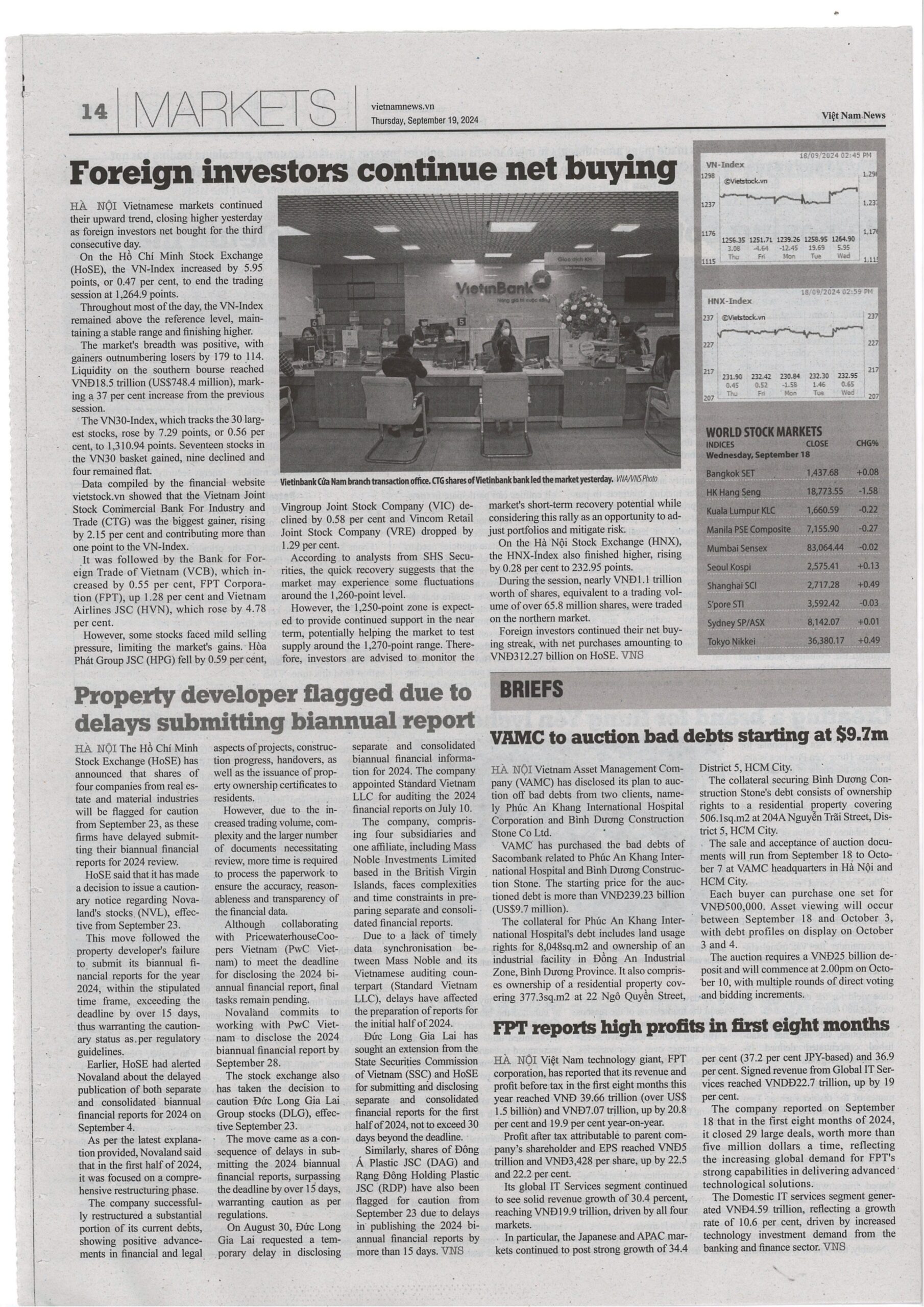 Source: Foreign Investors Continue Net Buying (vietnamnews.vn)