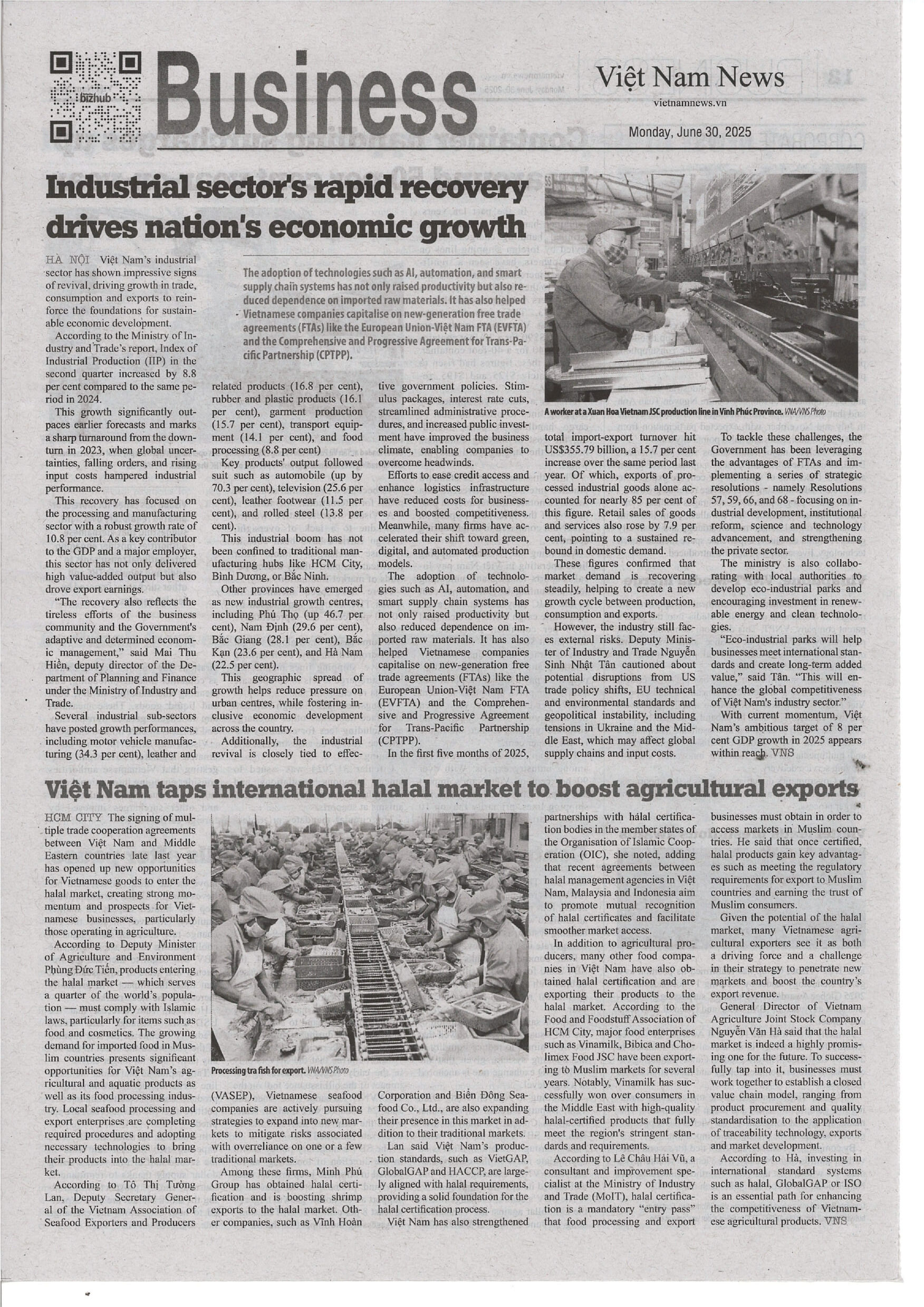 “Việt Nam’s industrial sector has shown impressive signs of revival, driving growth in trade, consumption and exports to reinforce the foundations for sustainable economic development.