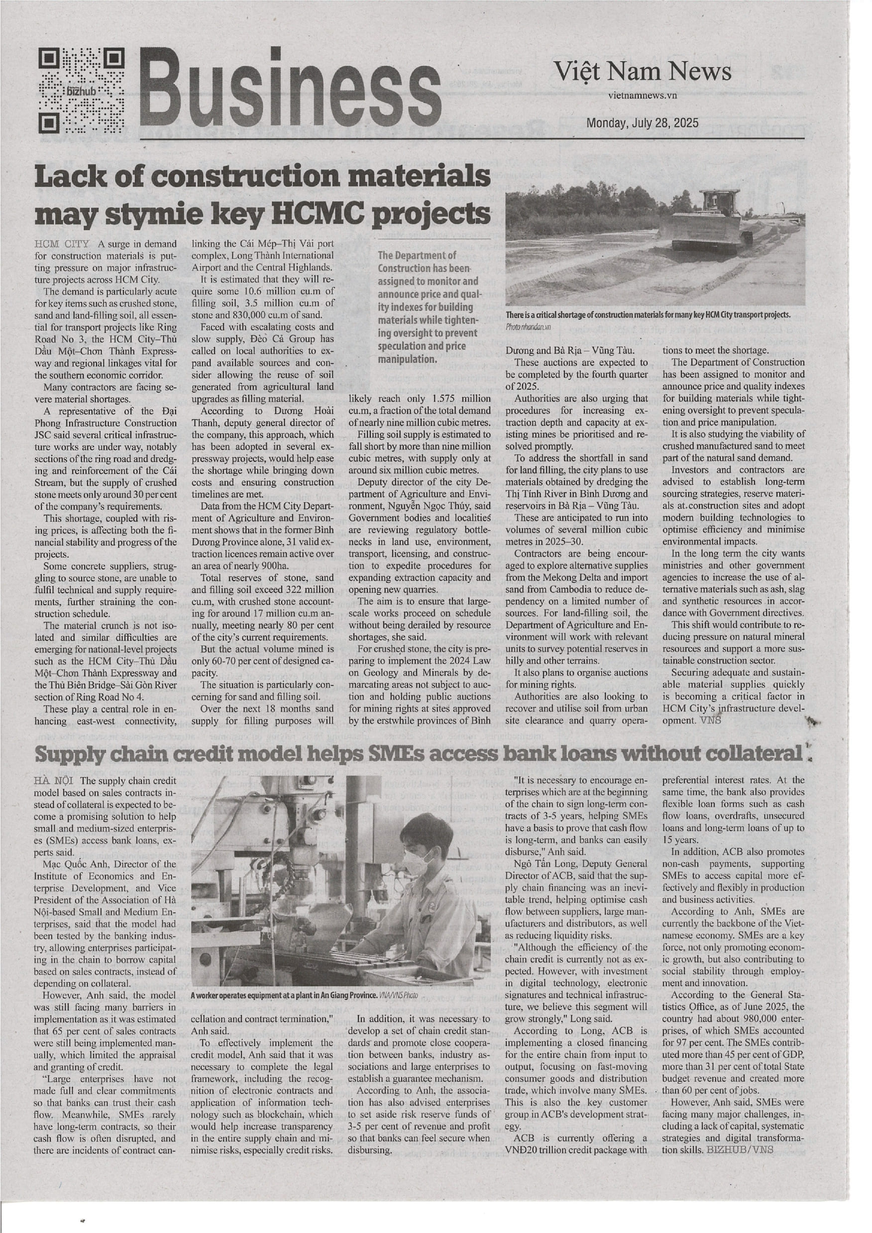 The demand is particularly acute for key items such as crushed stone, sand and land-filling soil, all essential for transport projects like Ring Road No 3, the HCM City–Thủ Dầu Một–Chơn Thành Expressway and regional linkages vital for the southern economic corridor.