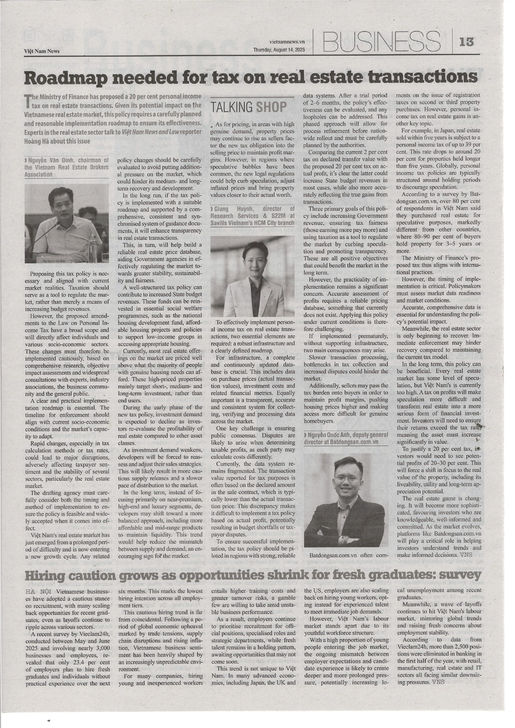 Experts in the real estate sector talk to a Việt Nam News reporter about this issue.”- Việt Nam News