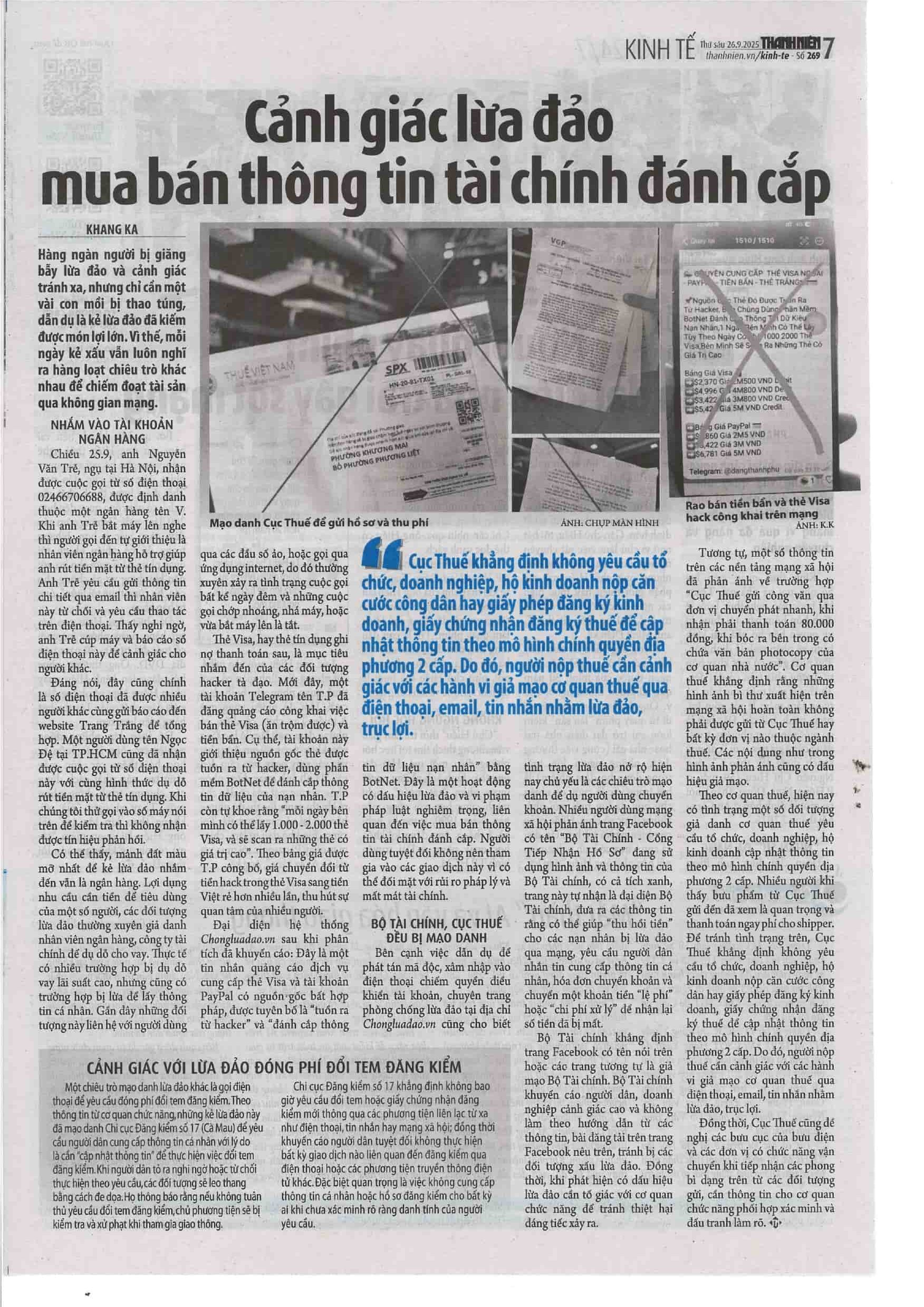 Nguồn: Cảnh Giác Lừa Đảo Mua Bán Thông Tin Tài Chính Đánh Cắp