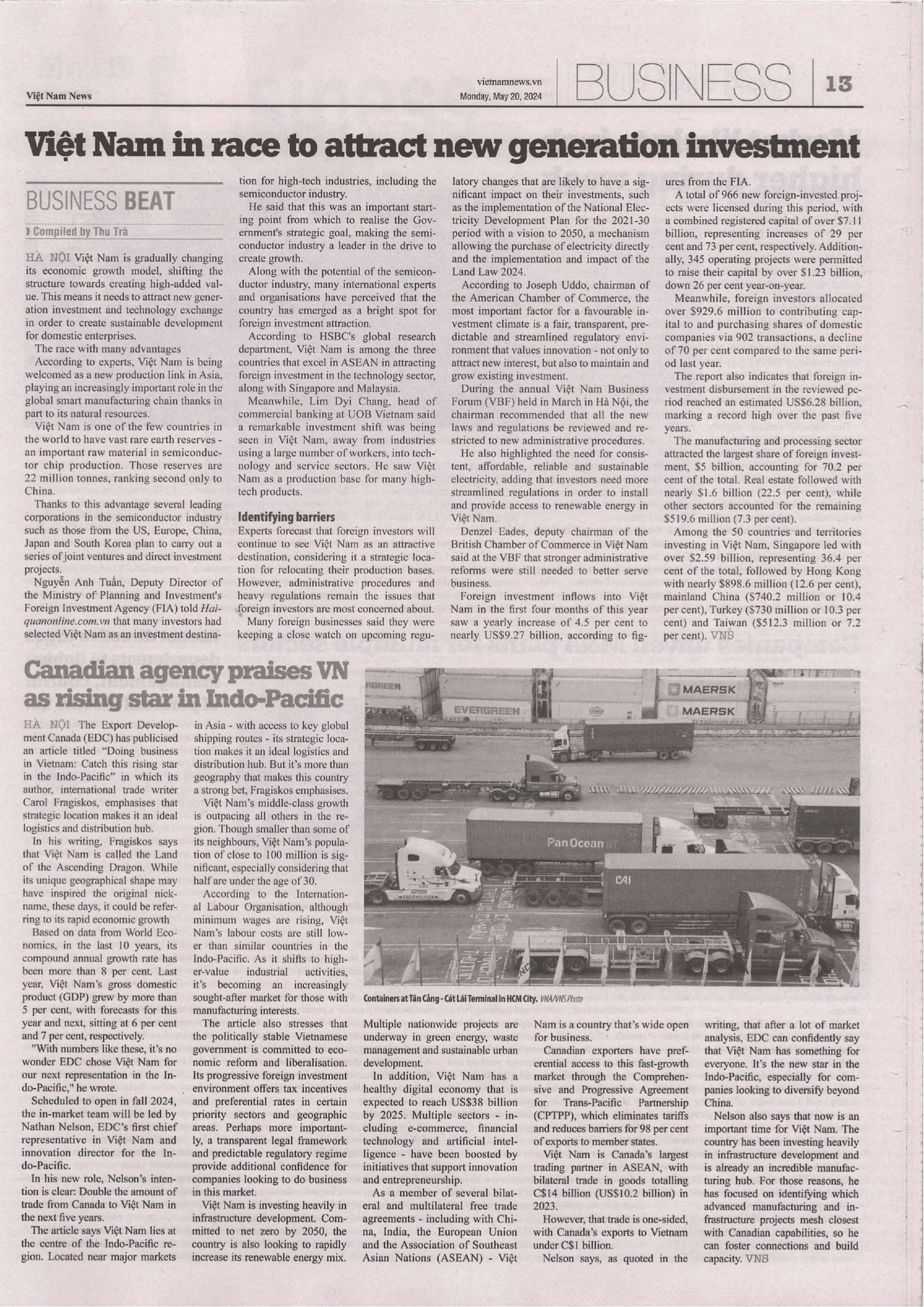 According to experts, Việt Nam is being welcomed as a new production link in Asia, playing an increasingly important role in the global smart manufacturing chain thanks in part to its natural resources. Việt Nam is one of the few countries in the world to have vast rare earth reserves – an important raw material in semiconductor chip production. Those reserves are 22 million tonnes, ranking second only to China. Thanks to this advantage several leading corporations in the semiconductor industry such as those from the US, Europe, China, Japan and South Korea plan to carry out a series of joint ventures and direct investment projects.